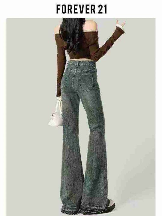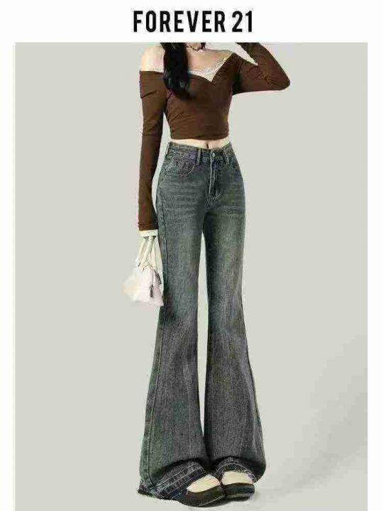 设计感复古做旧洗水棉微喇叭牛仔裤女高腰修身美式裤子...