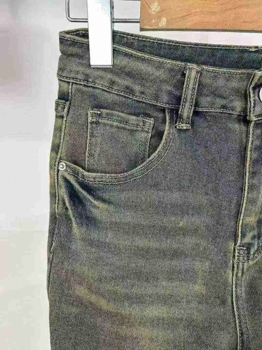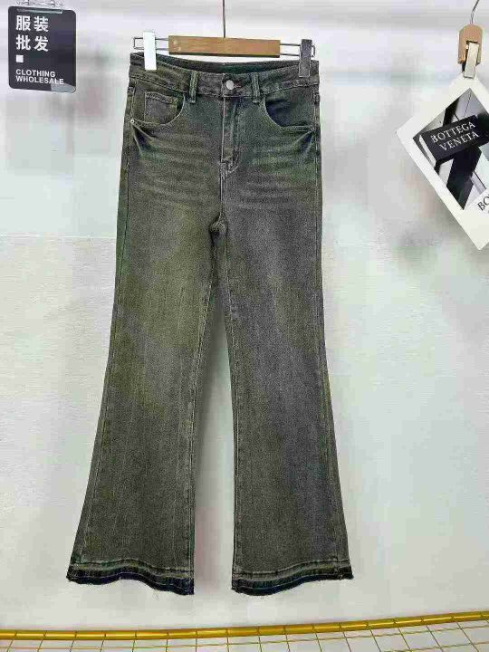 设计感复古做旧洗水棉微喇叭牛仔裤女高腰修身美式裤子,数量140条,单款单色,独立包装,尺码xs-xl码,低价批发 全清12.9秒杀