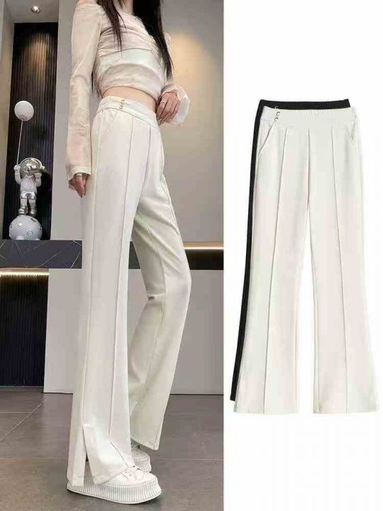 13.8清298件喇裤女春夏季薄款窄版高腰显瘦垂坠感弹力冰丝女裤子黑色开叉喇叭裤 内里包边 质量杠杠滴 实体店闭眼冲 码数S-2XL 独立包装带吊牌