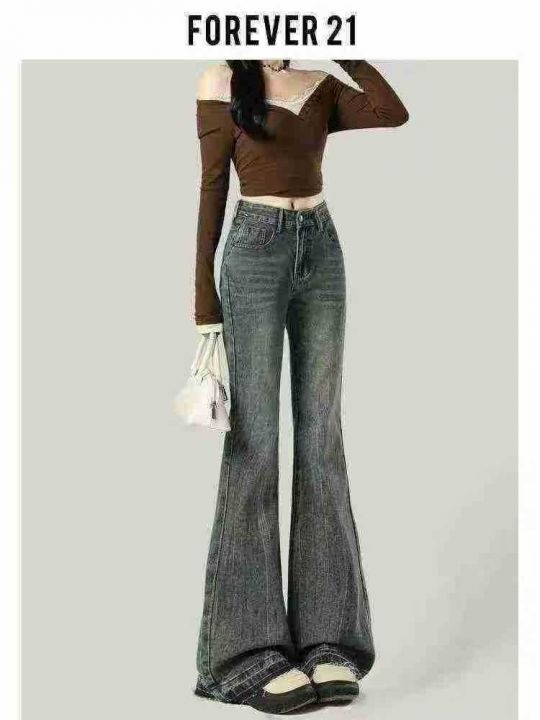 设计感复古做旧洗水棉微喇叭牛仔裤女高腰修身美式裤子,数量140条,单款单...