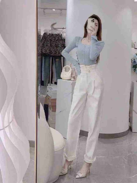 9.9清96件女水洗棉牛仔裤高级感高腰阔腿裤女春秋今年流行的长裤子 码数S-M-L 独立包装