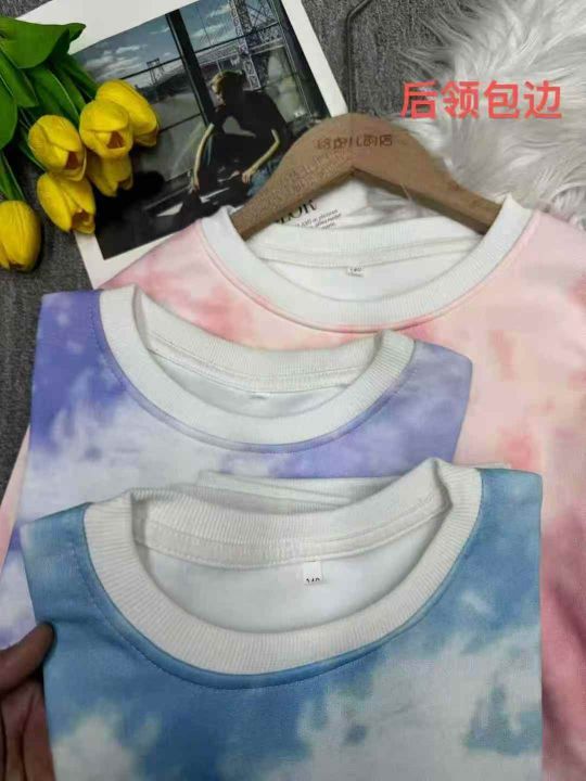 春秋长袖男女童洋气韩版扎染时尚休闲百搭圆领卫衣,独立包装,码数90-140码,数量461件,分货加1,货号1024#52