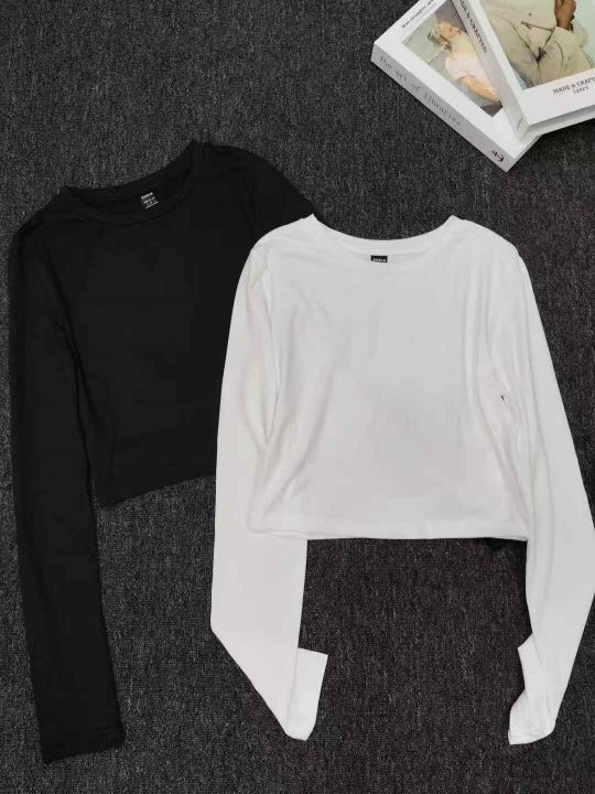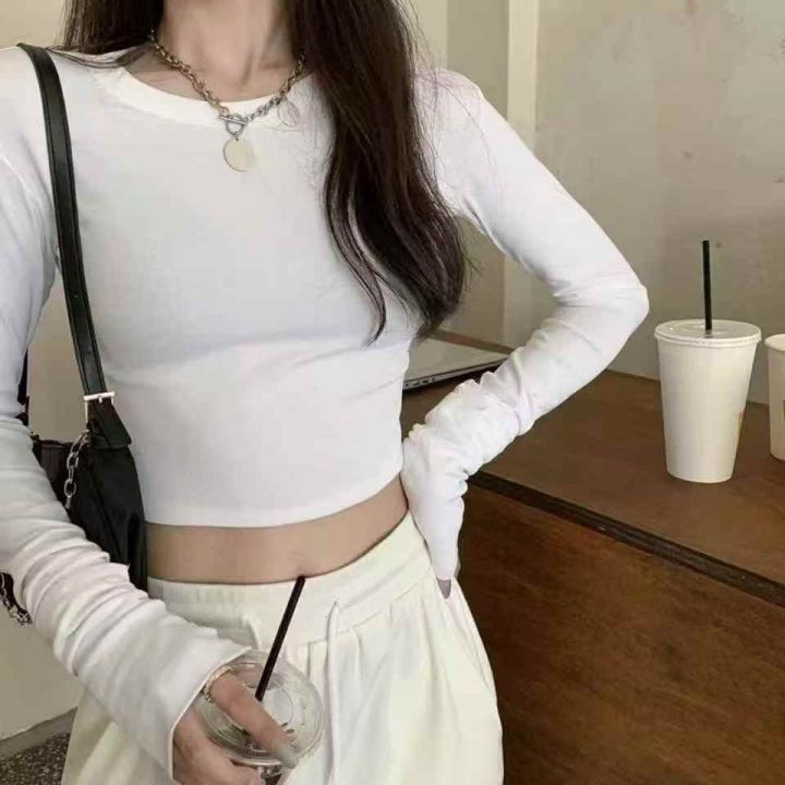减龄气质休闲长袖打底衫韩版短款露脐T恤女秋装修身显瘦上衣百搭,没独立包装,工厂新货,有部分有吊牌,S-XL,8300件,全清3.8