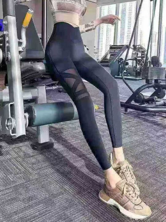 天猫下架高腰收腹网纱拼接裸感瑜伽长裤,面料比较统一...