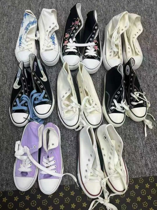 经典港风复古帆布鞋,花卉国潮刺绣匡威鞋,高端品质好货,深圳实体店货,款式新潮,质量上乘,数量130双,码数37-41,大部分都有配鞋盒,不分货