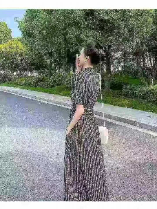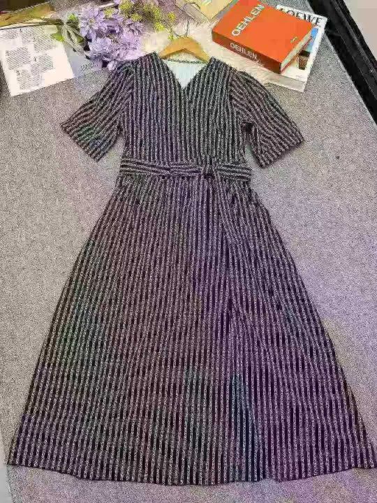 复古法式印花v领显瘦短袖开叉绑带气质长连衣裙,独立包装,码数1-4码,数量382条,1码裙长118厘米,分货加1