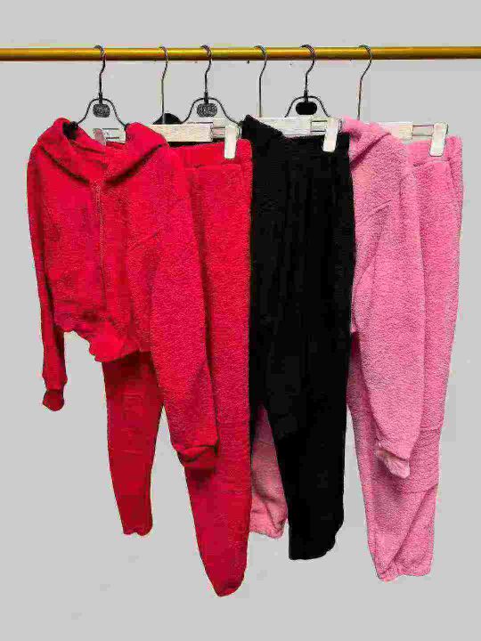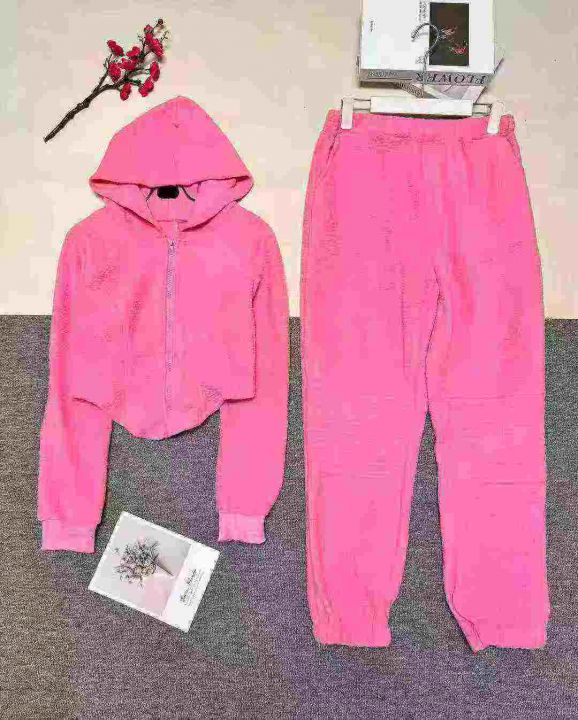 欧美跨境潮流摇粒绒短款连帽开衫+长裤休闲两件套,整款三色,数量100套左右,码数S-2XL,品质好,有独立包装。