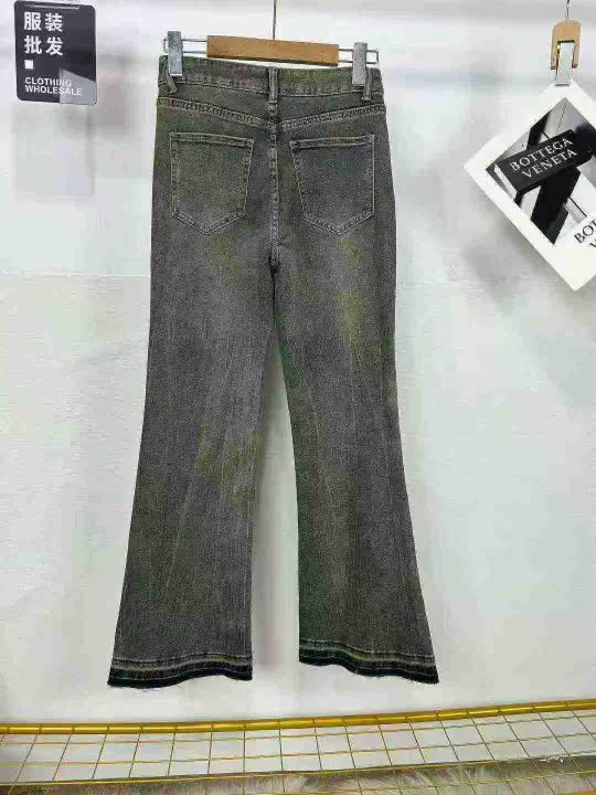 设计感复古做旧洗水棉微喇叭牛仔裤女高腰修身美式裤子,数量140条,单款单色,独立包装,尺码xs-xl码,低价批发 全清12.9秒杀