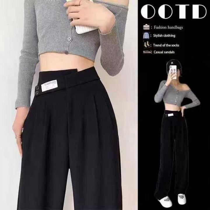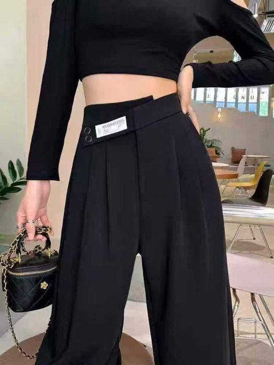 秋款加厚西裤☕️货号2319# 数量174条全清11.8元码数XS到XXL,独立包装,内里做工都包边,黑色阔腿裤女高腰垂感新款休闲直筒拖地西装裤