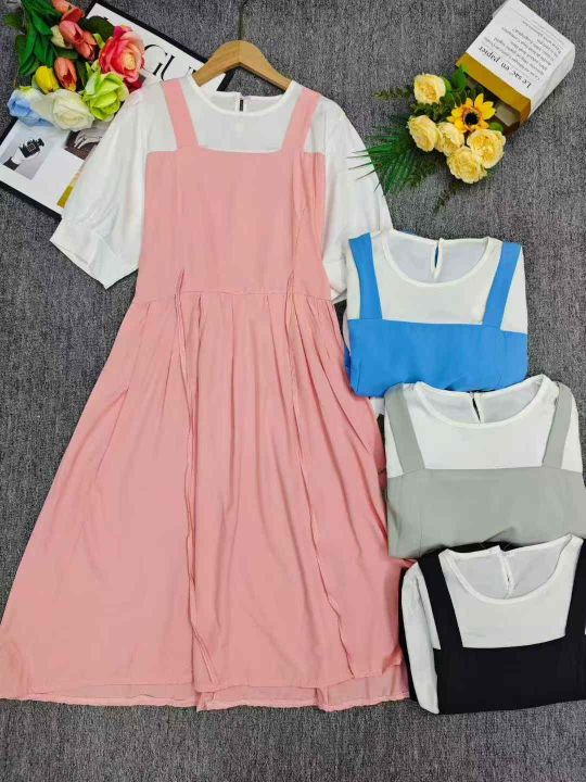 电商仓回收152件少女风拼接假两件收腰显瘦韩版连衣裙,码数S-2XL。面料柔软舒适有垂感,后腰有松紧带,大货比例90%都是粉红色,其他的颜色很少。带纸板独立包装,分货➕1