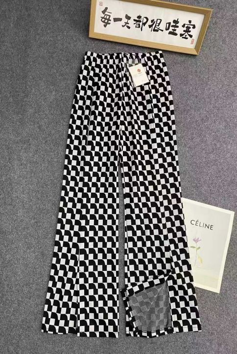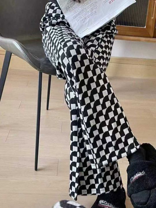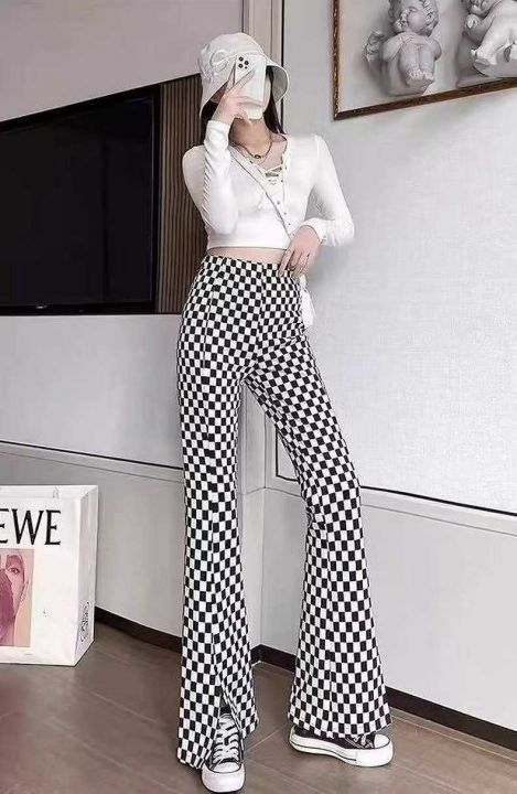 棋盘格子喇叭裤529件,清8.5,面料微弹,松紧腰,裤脚...