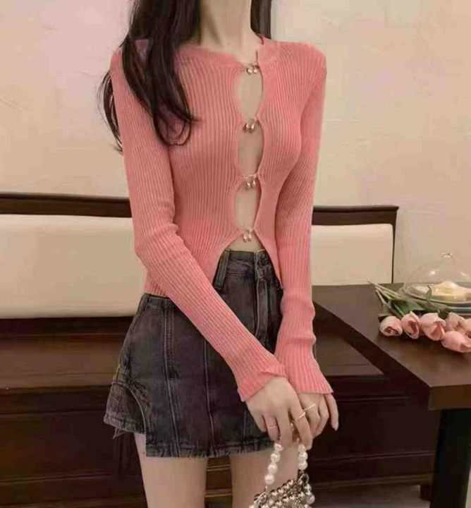 秋季新款美式辣妹镂空长袖弹力修身显瘦性感纯欲针织套头毛衣,独立包装有垫肩,均码面料柔软舒适弹力大,180件,全清4.9元超低价秒杀!分货加一!
