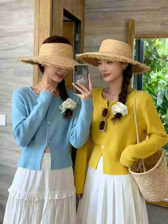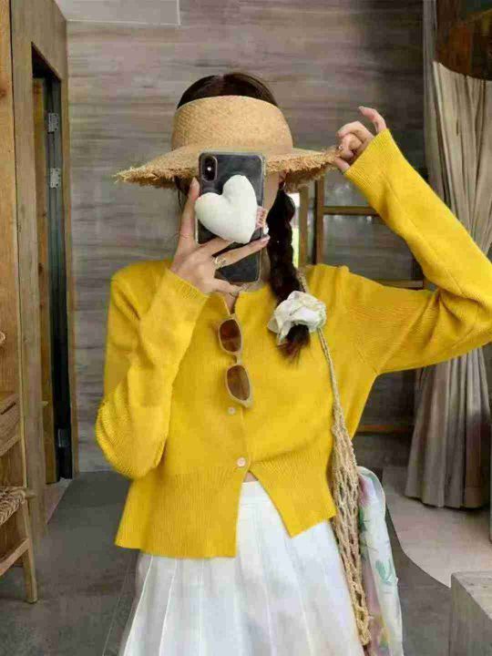 秋季新品小清新设计款短款针织毛衣开衫,独立包装,均...