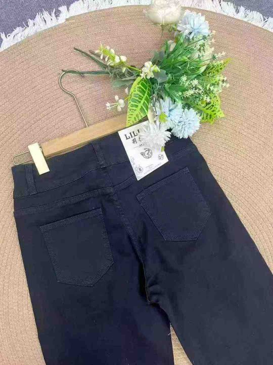 亏本清仓处理194件高品质水洗高腰修身黑色直筒牛仔裤...