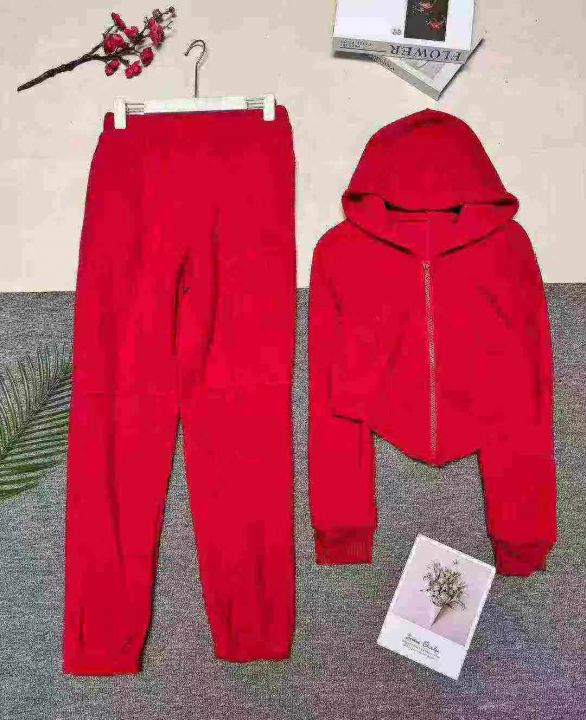 欧美跨境潮流摇粒绒短款连帽开衫+长裤休闲两件套,整款三色,数量100套左右,码数S-2XL,品质好,有独立包装。