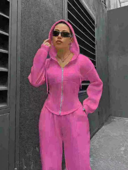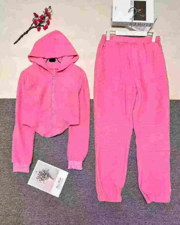 11.5清欧美跨境潮流摇粒绒短款连帽开衫+长裤休闲两件...