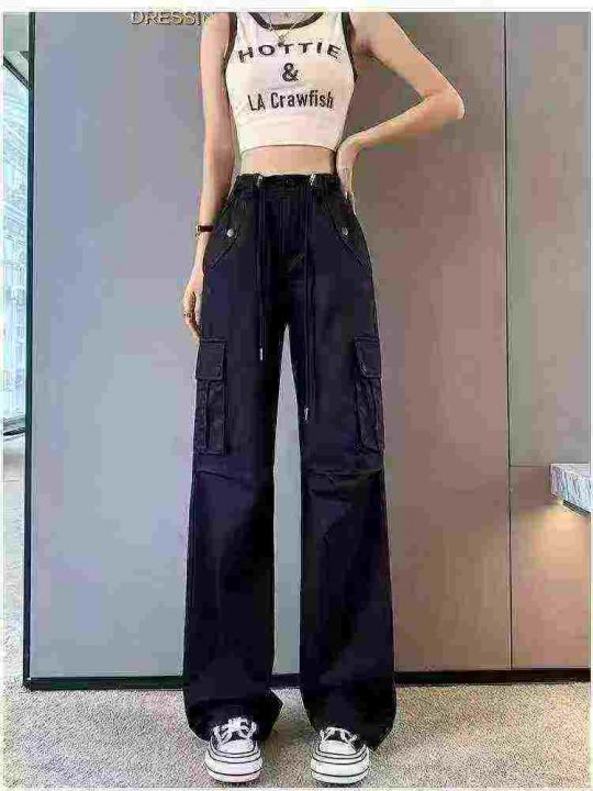 ☕️美式阔腿女秋款抽绳工装裤垂感显瘦复古运动休闲风高腰束脚长裤373条全...