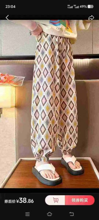中大童时尚印格冰丝裤,面料冰爽丝滑垂感有弹力,98件,2-7码,独立包装吊牌,全清4.8元,不分货