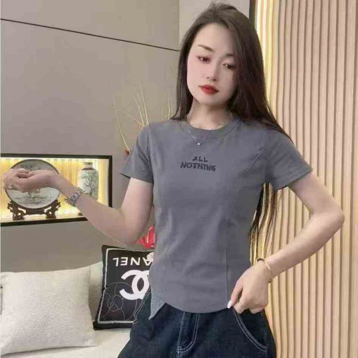 冰丝螺纹短袖t恤女夏修身显瘦甜辣小上衣设计感小众202...