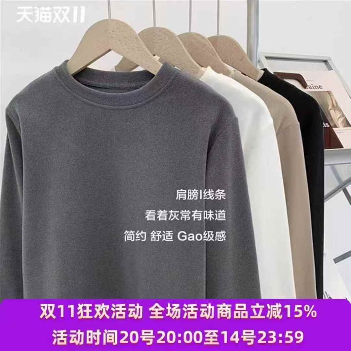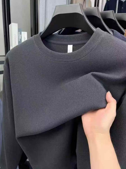 [啤酒]男士纯棉重磅纯色长袖T恤宽松青少年潮休闲美式内搭打底衫,独立包装...