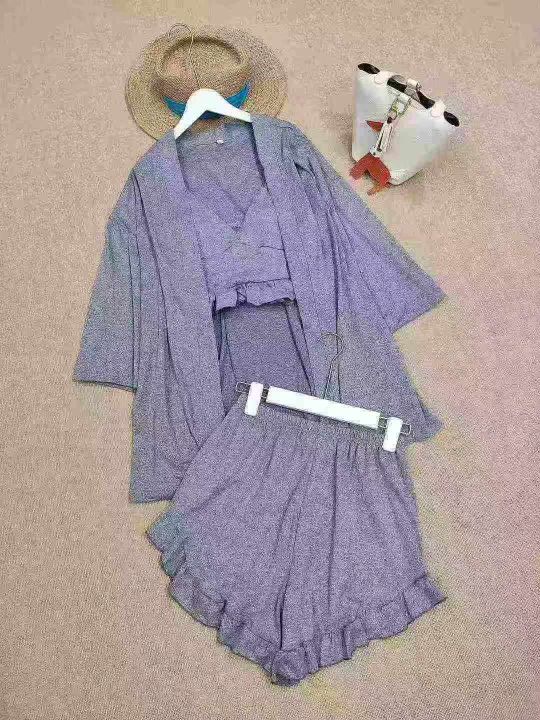 12.8,清386高级灰休闲吊带带胸垫家居三件套,23456码...