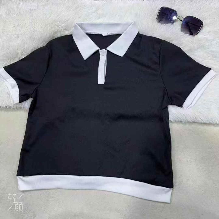 正肩冰丝短袖女T恤女polo上衣,黑白两色,码数s码到L...