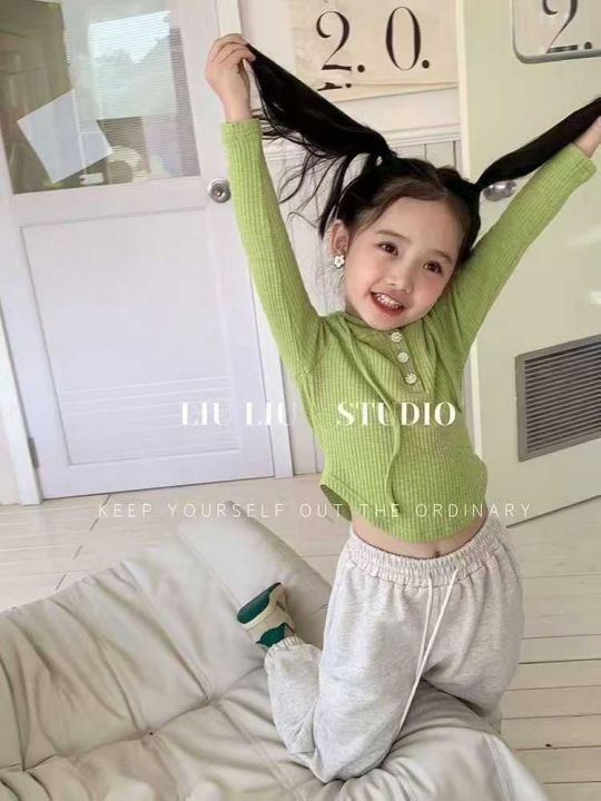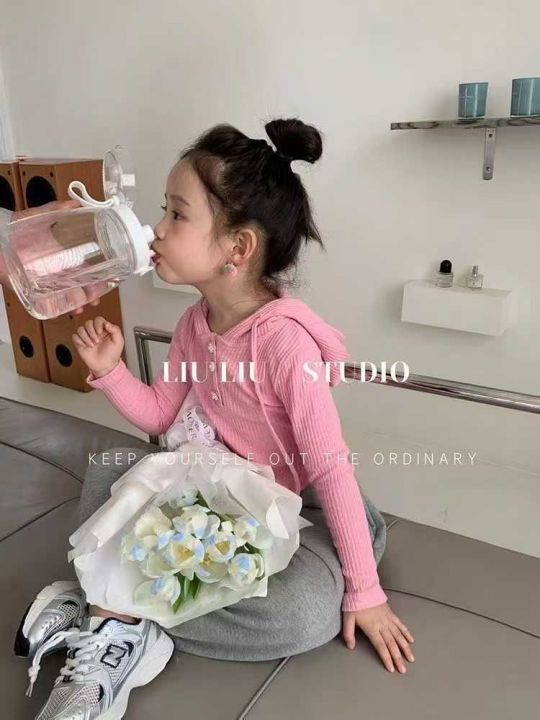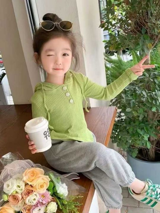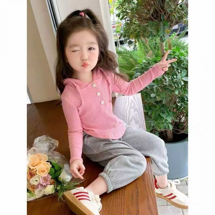 女童春装儿童时髦连帽休闲卫衣洋气女宝宝运动服套装,...