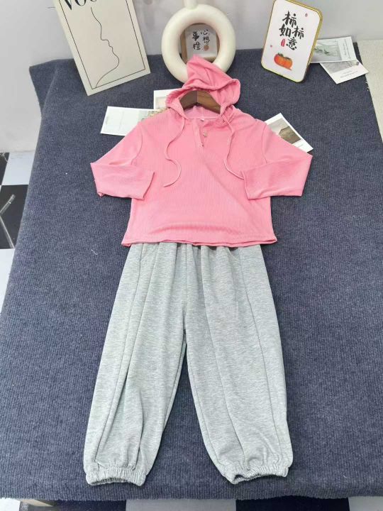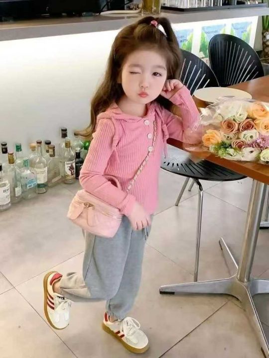 女童春装儿童时髦连帽休闲卫衣洋气女宝宝运动服套装,数量48套,码数100-150,独立包装,全清9.9元。 货号:1303
