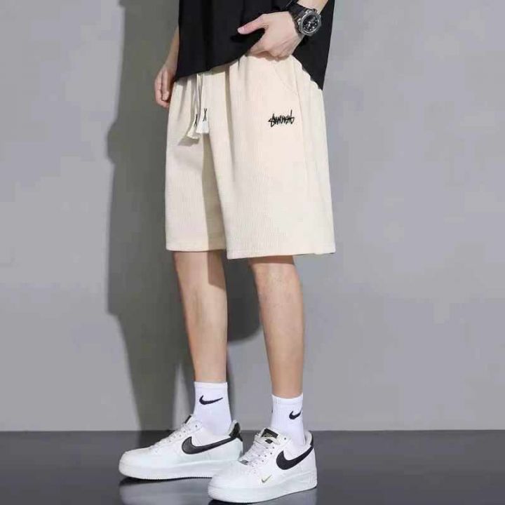 100条华夫格男士短裤潮牌宽松直筒休闲潮流运动男款五...