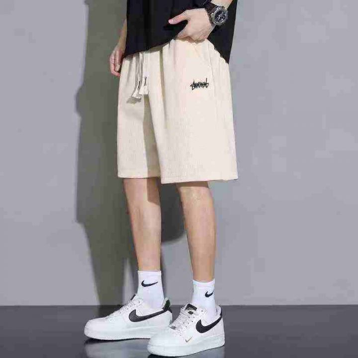 100条华夫格男士短裤潮牌宽松直筒休闲潮流运动男款五...