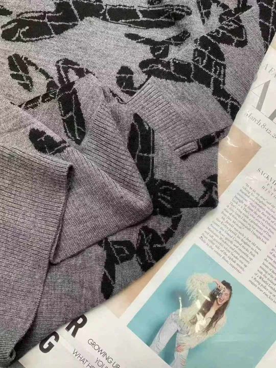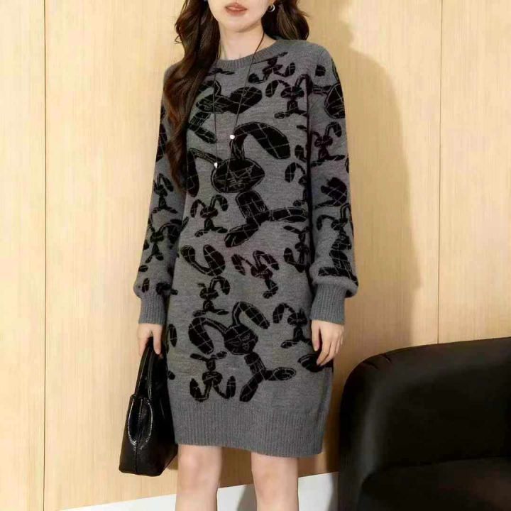 品牌原单秋冬新款宽松慵懒风提花圆领套头连衣裙,独立...
