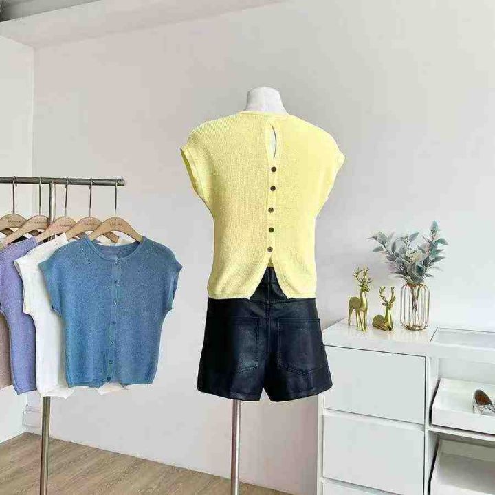 夏季新款冰丝法式镂空后背单排扣开叉针织时尚显瘦短袖针织开衫,独立包装,...