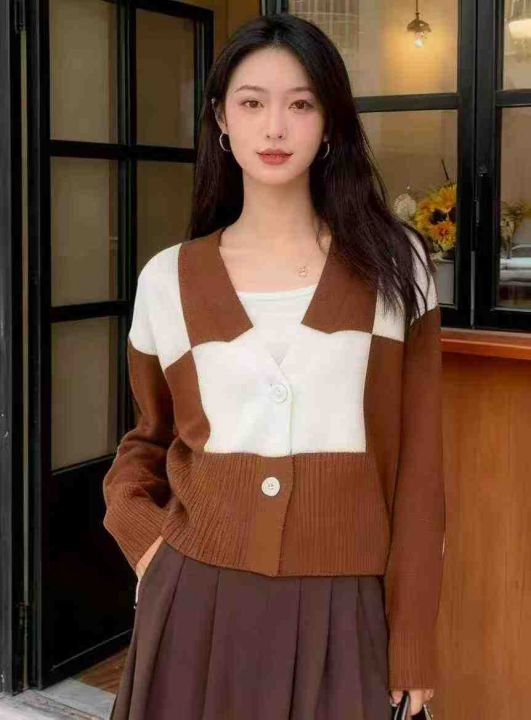秋季新品撞色拼接针织毛衣开衫,独立包装,均码面料柔软舒适弹力大,430件,全清6.9元超低价秒杀!分货加一!