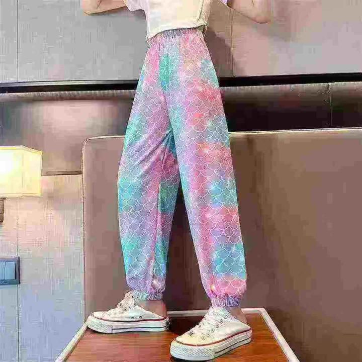 童装冰丝裤,女童夏季速干休闲束脚彩色冰丝裤,松紧腰...