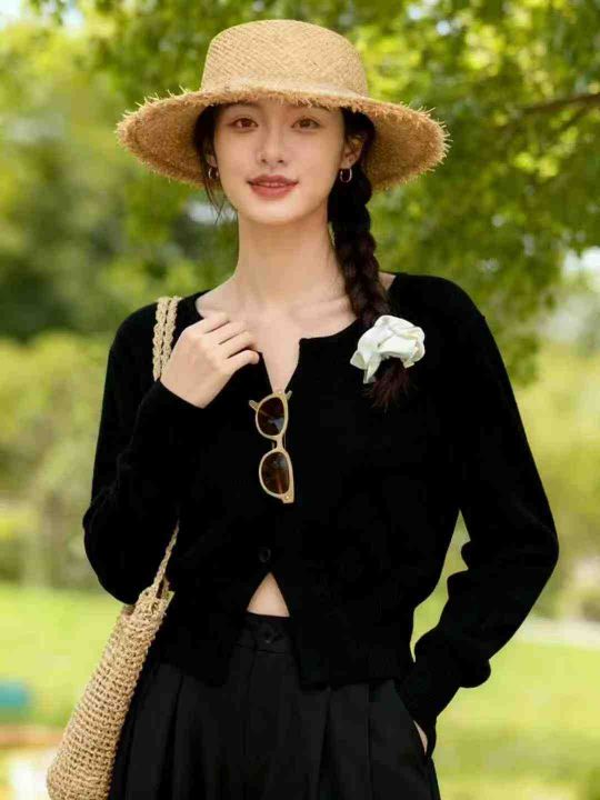 秋季新品小清新设计款短款针织毛衣开衫,独立包装,均...