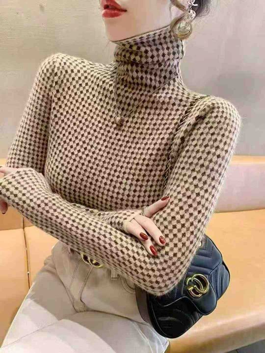 品牌原单冬季千鸟格加厚款包芯纱高领套头毛衣,独立包...
