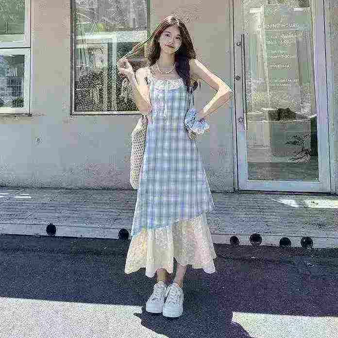 ☕️夏日度假风格子吊带裙连衣裙女夏季新款清新宽松显瘦连衣裙50条全清8.8...