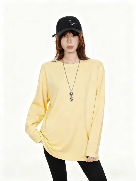 秋季净版简约宽松高弹力休闲打底外穿长袖T桖,独立包...