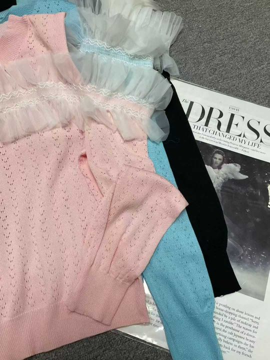 秋季新品晓溪同款露肩网纱拼接设计款长袖套头毛衣,独立包装,均码面料软糯舒适弹力大,110件,全清6.9元超低价秒杀!