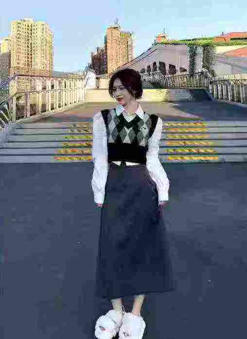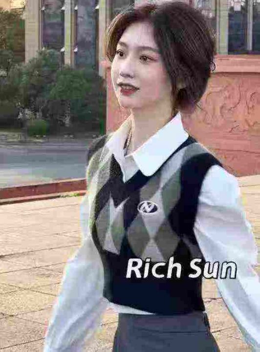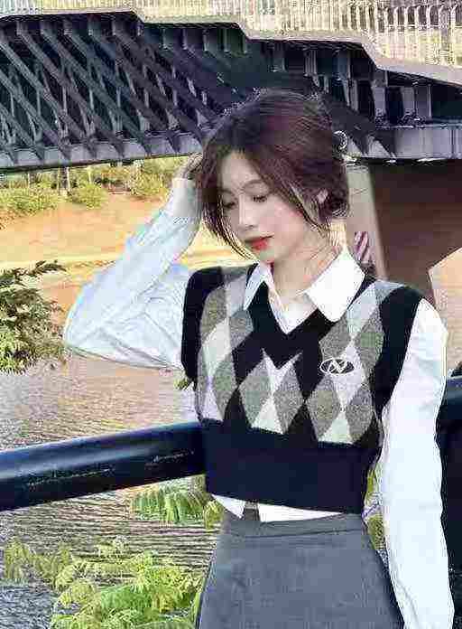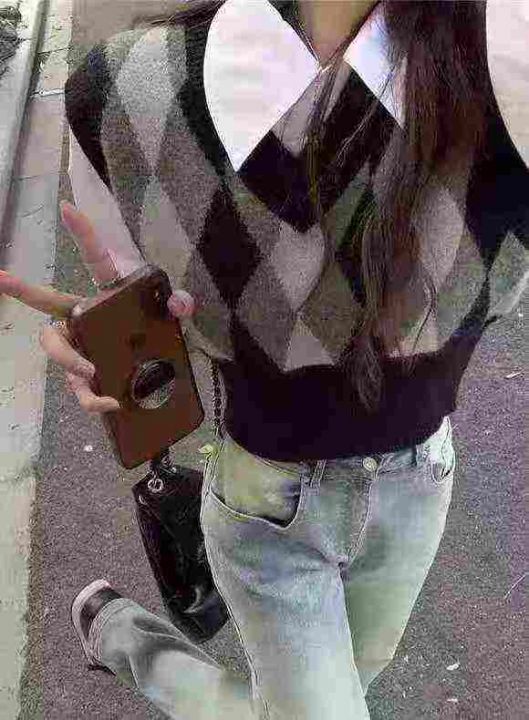 早秋新款菱格针织无袖小背心马甲女学院风辣妹高腰百搭...