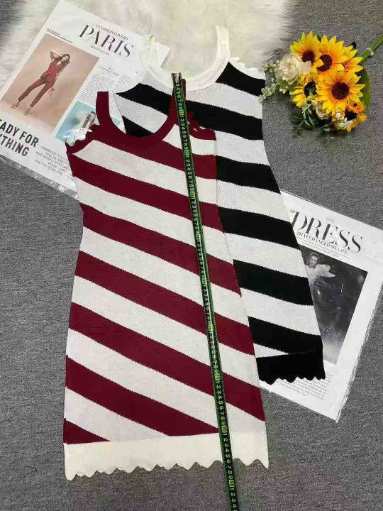 夏季新款法式条纹收腰显瘦针织吊带连衣裙,独立包装,...