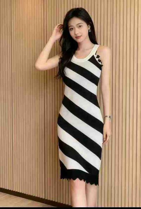 夏季新款法式条纹收腰显瘦针织吊带连衣裙,独立包装,均码面料柔软舒适弹力大,386件,全清6.9元超低价秒杀!分货加一!