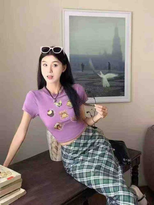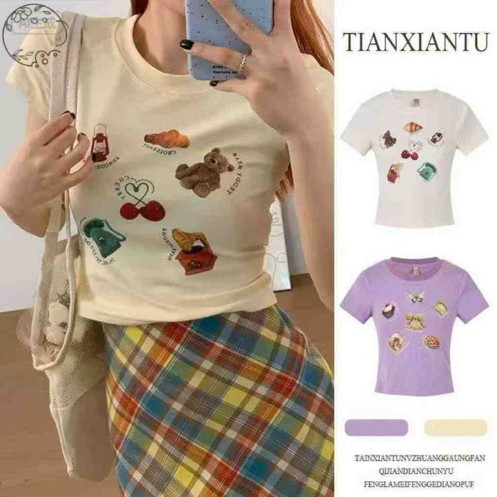 夏季新款网红复古冰丝印花针织短袖,独立包装,均码面...