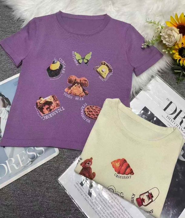 夏季新款网红复古冰丝印花针织短袖,独立包装,均码面...