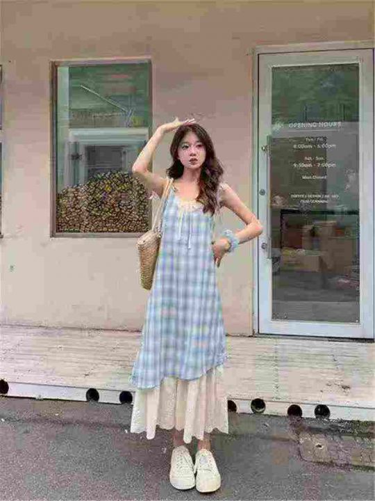 ☕️夏日度假风格子吊带裙连衣裙女夏季新款清新宽松显...
