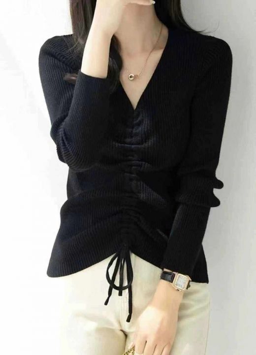 秋季新品韩版V领抽绳设计款包芯纱套头毛衣,独立包装,均码面料软糯舒适弹力大,375件,全清6.9元超低价秒杀!分货加一!