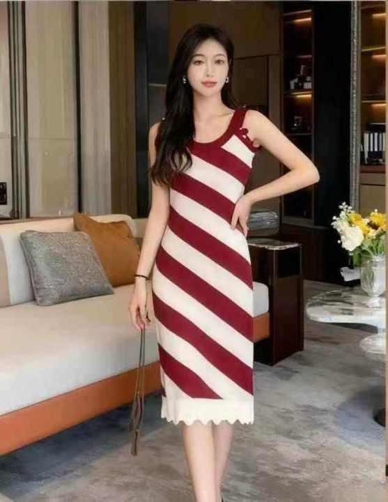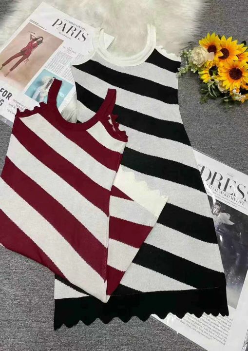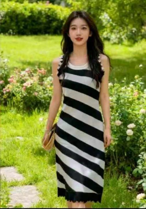 夏季新款法式条纹收腰显瘦针织吊带连衣裙,独立包装,均码面料柔软舒适弹力大,386件,全清6.9元超低价秒杀!分货加一!