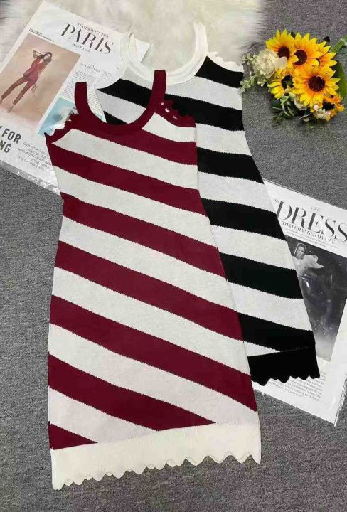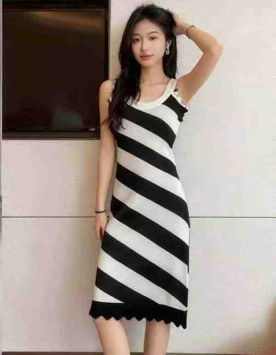 夏季新款法式条纹收腰显瘦针织吊带连衣裙,独立包装,均码面料柔软舒适弹力大,386件,全清6.9元超低价秒杀!分货加一!