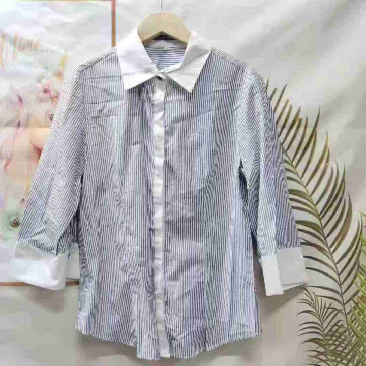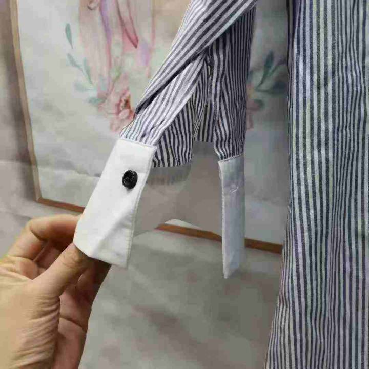 2.5元秒杀[庆祝][庆祝] 新款条纹修身休闲气质正装衬衣,独立包装,白色位置有黄点,码数s-xl,数量135件。