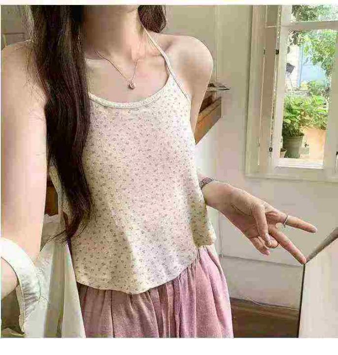 天猫在售款543件高品质清新甜美纯欲风碎花绑带挂脖背心,螺纹纯棉面料高弹力,单款单色,S-L,独立包装带吊牌